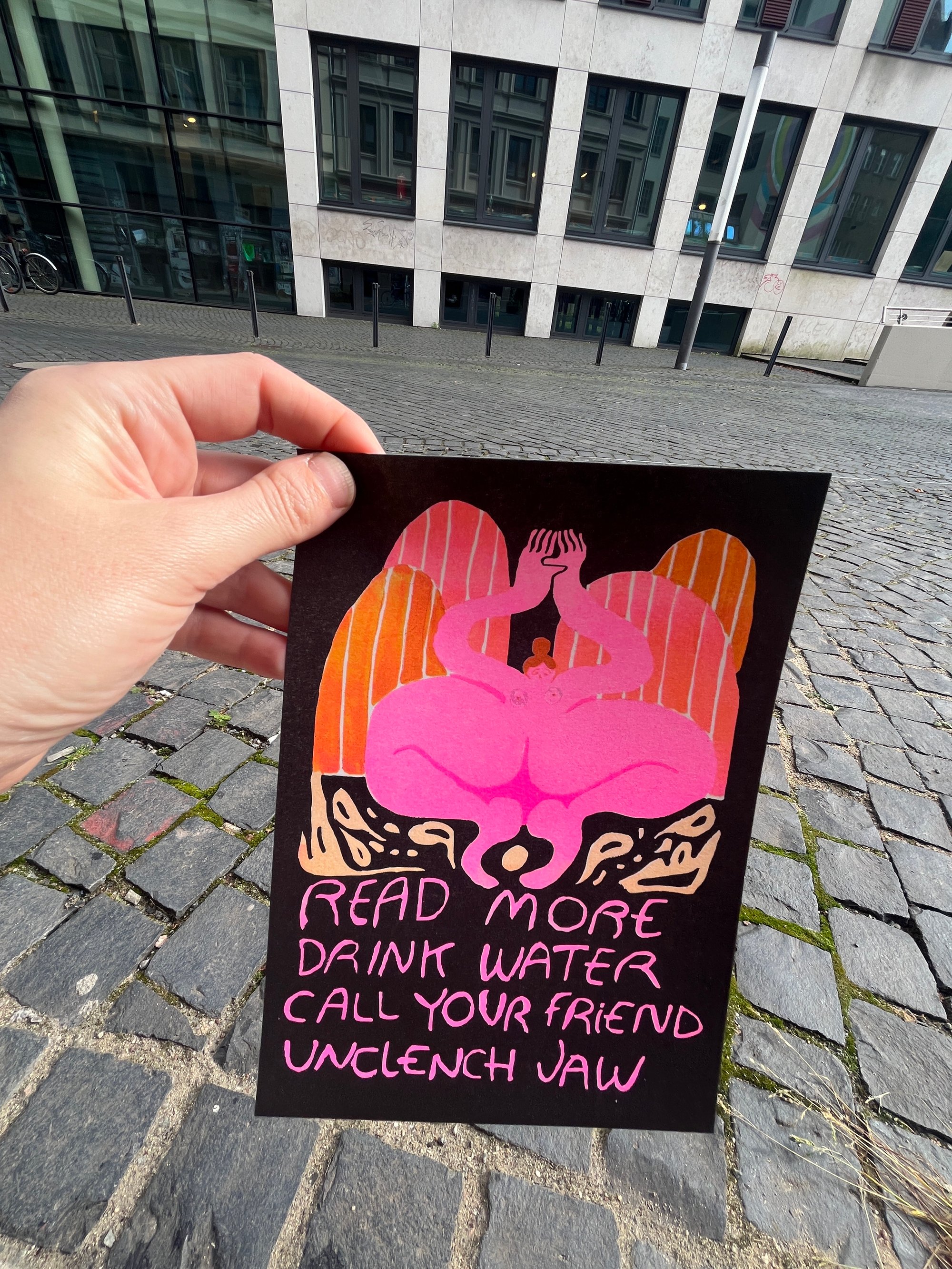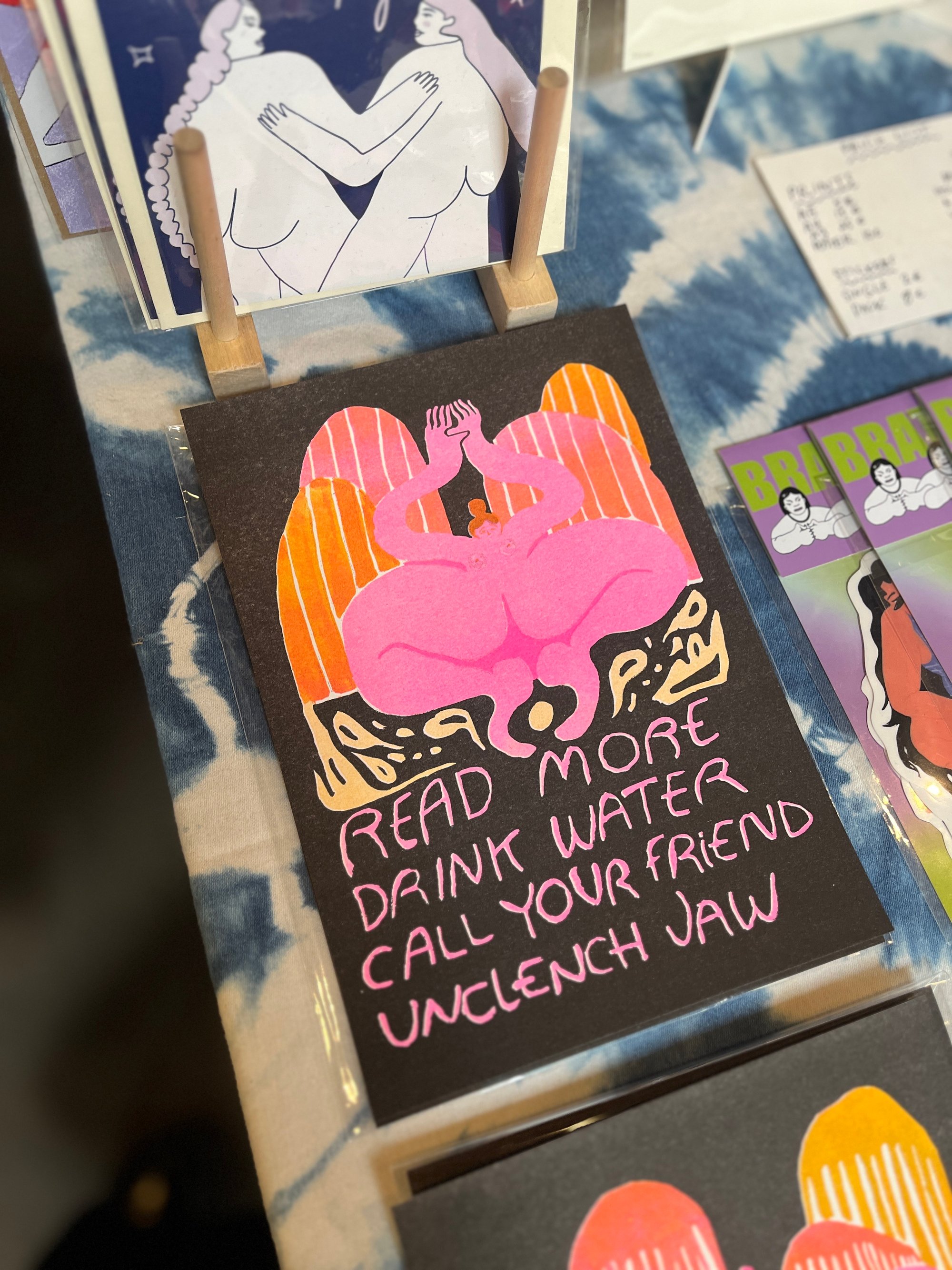 Printed on 200gsm archival paper, with risograph printing using 3 colours (Fluorescent pink, Sunflower Yellow, and Black) . Expertly printed by RisoFort in Hamburg, DE.